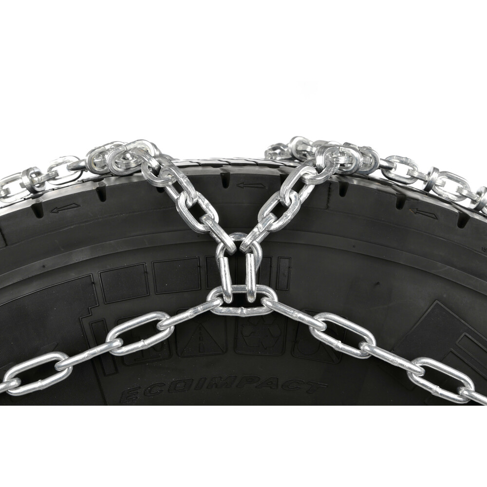 Αλυσίδες χιονιού για φορτηγά βαρέως τύπου της σειράς CARGO PLUS PROFESSIONAL EVO από την εταιρία LAMPA, ιταλικής προέλευσης, κατασκευασμένες από ισχυρό ατσάλι μαγγανίου (σκληρυμένος γαλβανιζέ χάλυβας), πάχους 7 mm. Είναι σχεδιασμένες με συμμετρικό μοτίβο σε σχήμα "διαμάντι" (diammond pattern), συνδέσεις διπλής όψης σε σχήμα D και πρόσθετους ενισχυτικούς συνδέσμους (cross links) για αύξηση της πρόσφυσης στο οδόστρωμα και μείωση της φθοράς. Κατάλληλο αξεσουάρ φορτηγού, που παρέχει προστασία κατά την οδήγηση σε συνθήκες που υπάρχει χιόνι ή πάγος.