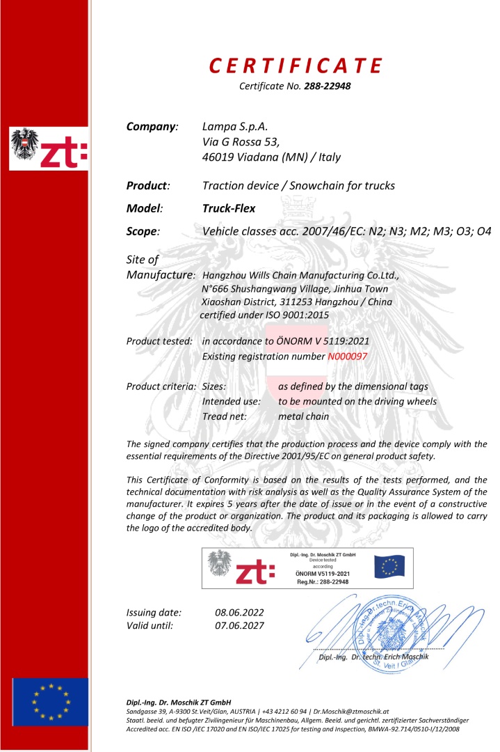 - Αλυσίδες φορτηγού και λεωφορείου με γρήγορο δέσιμο και μηχανισμό αυτόματου τεντώματος.