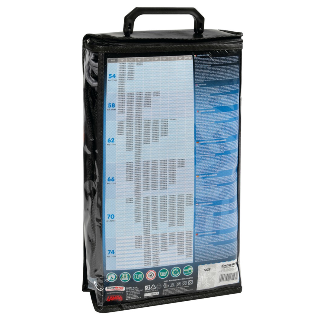 Αντιολισθητικά πανιά χιονιού (χιονοκουβέρτα) της σειράς SNOWDRIVE από την εταιρία LAMPA, ιταλικής προέλευσης, κατασκευασμένο από ανθεκτικό ειδικό ύφασμα σε μαύρο χρώμα. Απόλυτα ασφαλή, πλήρως ανθεκτικά, αναδιπλούμενα για εύκολη αποθήκευση, σχεδιασμένα για χρήση μακράς διάρκειας.