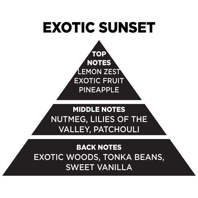Οι νότες κορυφής είναι λεμόνι, εξωτικά φρούτα και ανανάς, ενώ οι μεσαίες νότες είναι το μοσχοκάρυδο, ο κρίνος της κοιλάδας και πατσουλί.