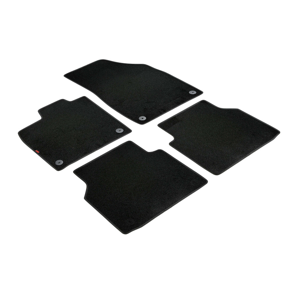 Πατάκια αυτοκινήτου από την εταιρία LAMPA, ιταλικής προέλευσης, κατασκευασμένα από υψηλής ποιότητας μοκέτα – 100% πολυπροπυλένιο – σε μαύρο χρώμα με περιμετρικό φινίρισμα από βελούρ ρέλι (απομίμηση βελούδου), σχεδιασμένα για να ταιριάζουν ακριβώς στις διαστάσεις του δαπέδου του εκάστοτε οχήματος – μαρκέ προϊόν. Είναι αδιάβροχα και διαθέτουν αντιολισθητικό πάτο ενισχυμένο με gel στο πίσω μέρος τους για καλύτερη πρόσφυση στο δάπεδο, καθώς και κουμπιά στερέωσης fix-points για όσα οχήματα είναι εξοπλισμένα με αντίστοιχες εργοστασιακές υποδοχές για να παραμένουν σταθερά στο πάτωμα της καμπίνας κατά την είσοδο/έξοδο των επιβατών.