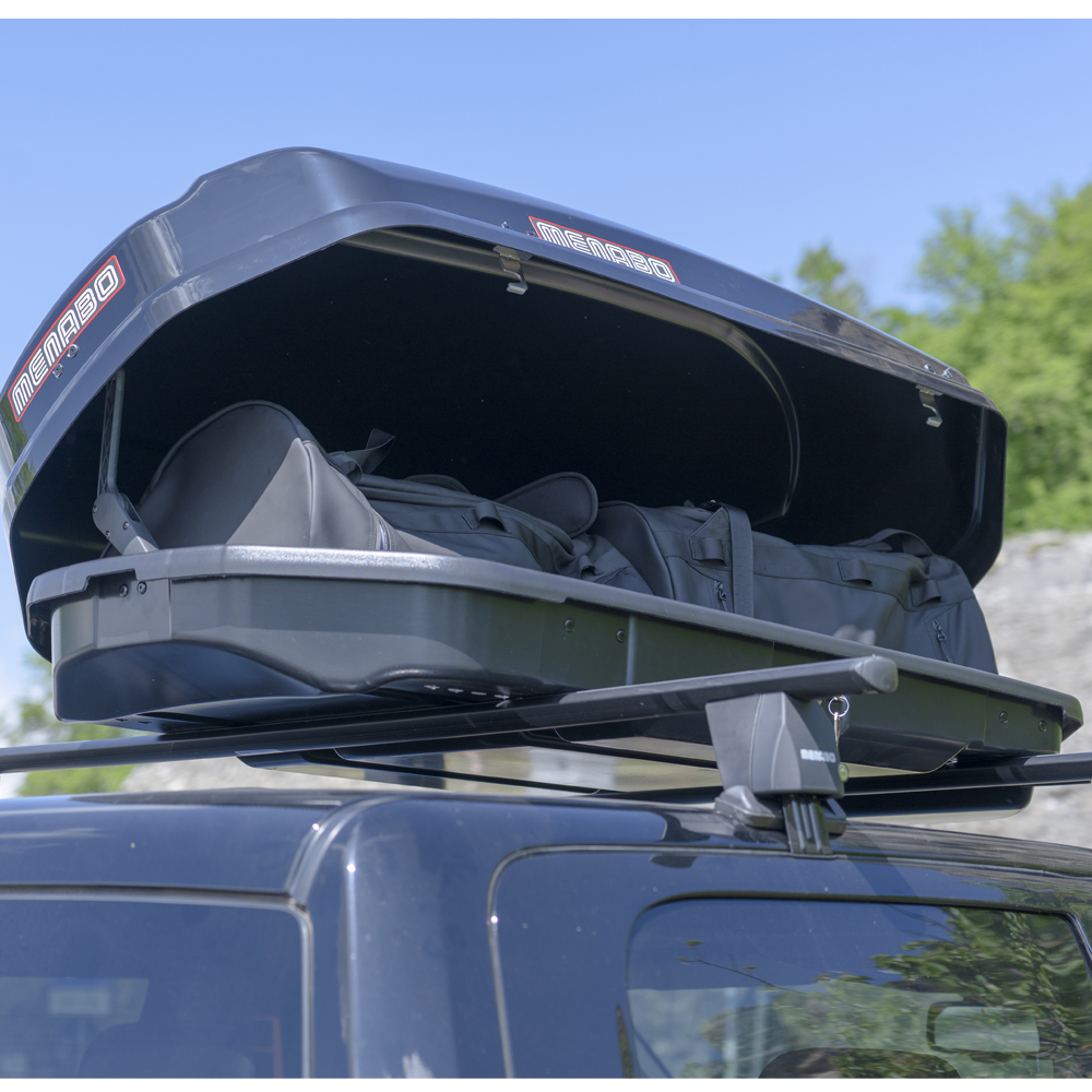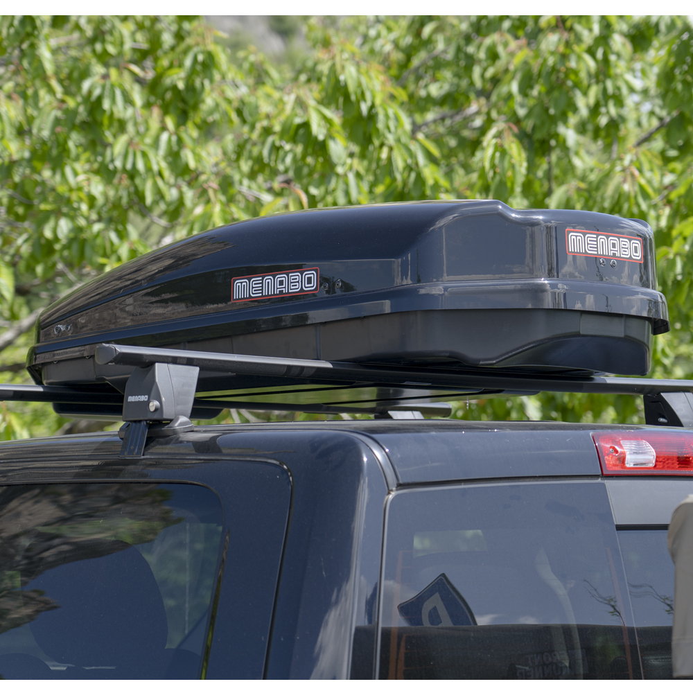 Μπαγκαζιέρα οροφής της σειράς SATELLITE από την εταιρία MENABO, 100% ιταλικής προέλευσης και κατασκευής από υψηλής ποιότητας ABS πλαστικό σε μαύρο χρώμα με γυαλιστερή υφή. Ένα προϊόν υψηλής αισθητικής, που διαθέτει: