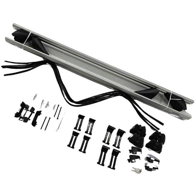 Μπάρες Οροφής Αλουμινίου Αεροδυναμικές Universal Rackit RK003C1-120cm Open & Closed Railing System Σετ Με Πόδια Και Κλειδαριά Ασημί