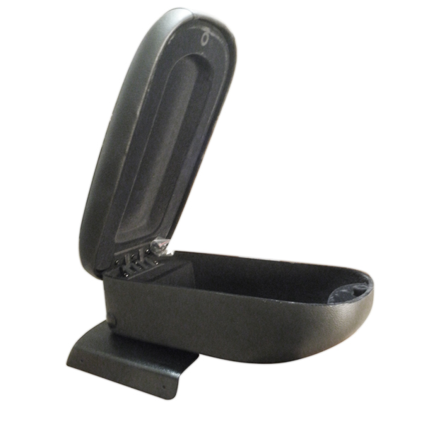 Είναι κατασκευασμένος από ποιοτικό πλαστικό σε συνδυασμό με οικολογικό τεχνόδερμα (συνθετική δερματίνη) σε μαύρο χρώμα με μαύρες ραφές και ειδικά σχεδιασμένος για να ταιριάζει τέλεια στο εκάστοτε όχημα. Διαθέτει πολύ μαλακό καπάκι με δυνατότητα ανοίγματος έως 90 μοίρες, εσωτερικό αποθηκευτικό χώρο, σύστημα ανάκλισης για δυνατότητα ανασήκωσης κάθετα ανάμεσα από τα καθίσματα (90 μοίρες) και η βάση τοποθετείται με 4 βίδες εξωτερικά από τη πίσω ποτηροθήκη (τη καλύπτει πλήρως).