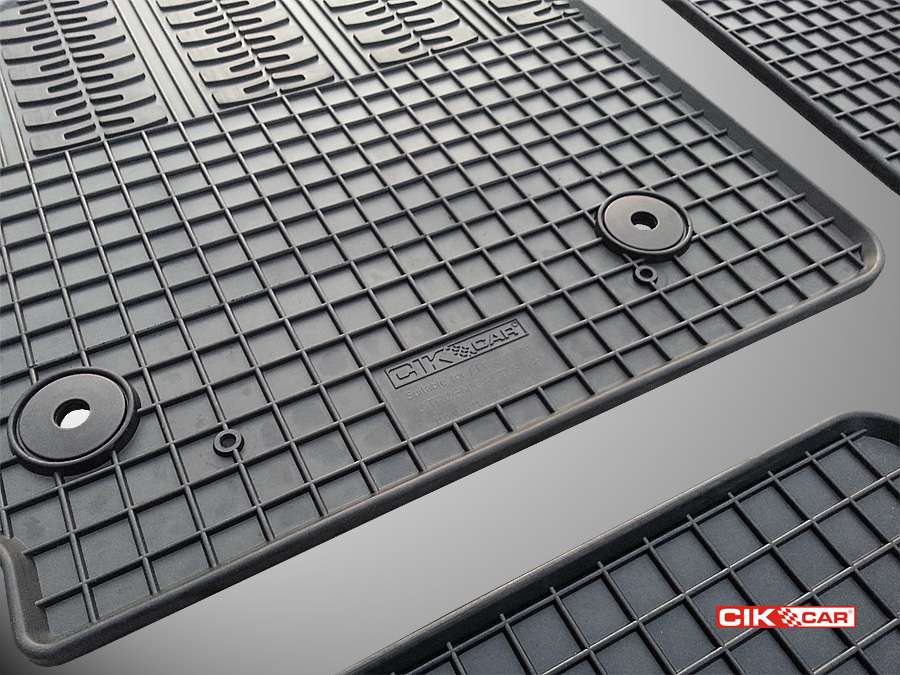 Πατάκια αυτοκινήτου από την εταιρία CIK, πολωνικής προέλευσης, σχεδιασμένα για να ταιριάζουν ακριβώς στις διαστάσεις του εκάστοτε οχήματός (μαρκέ) και κατασκευασμένα από υψηλής ποιότητας αντιχαρακτικό λάστιχο σε μαύρο χρώμα, χαρίζοντας εξαιρετική αντοχή για χρήση μακράς διάρκειας. Έχουν αντιολισθητικό πάτο με υποδοχές για κουμπώματα (αν διαθέτει το αυτοκίνητο) για καλύτερη σταθερότητα και πρόσφυση στο δάπεδο, ώστε να παραμένουν σταθερά χωρίς να μετακινούνται από τη θέση τους κατά την είσοδο/έξοδο των επιβατών. Το ανάγλυφο μοτίβο και οι ελαφρώς ανασηκωμένες άκρες τους διατηρούν το εσωτερικό της καμπίνας καθαρό, συγκρατούν όλη τη βρωμιά, σκόνη, λάσπες, υγρασία, κτλ. και κάνουν την αφαίρεση των ρύπων πολύ πιο εύκολη κατά το καθάρισμα. Είναι κατάλληλα για όλες τις εποχές, ανθεκτικά στο χρόνο και παρέχουν υψηλή προστασία. Πλένονται και καθαρίζονται πολύ εύκολα, διατηρώντας το αρχικό τους σχήμα. Εύκολη και γρήγορη τοποθέτηση.