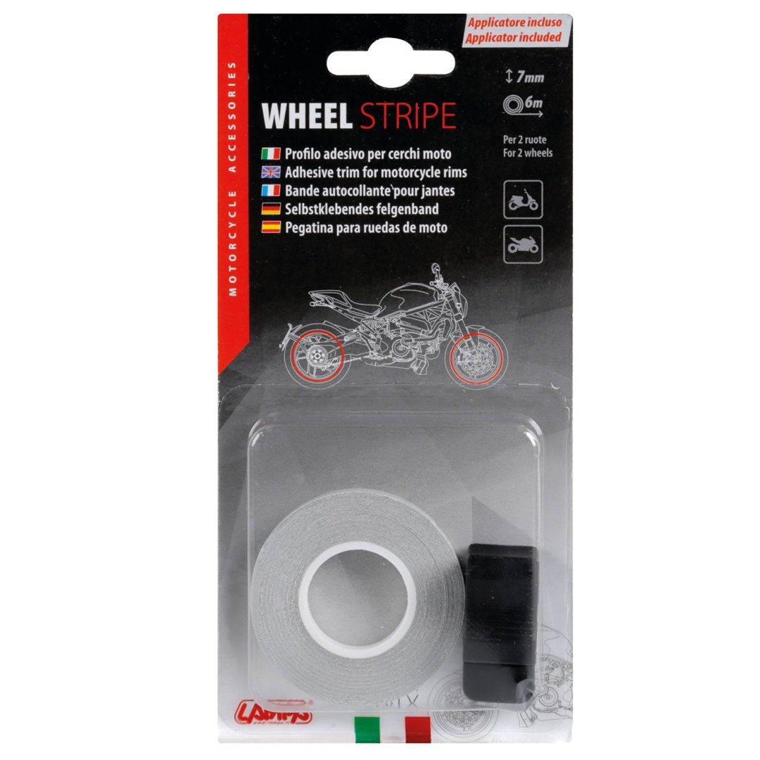 Αυτοκόλλητη ταινία υψηλής ποιότητας και αντοχής από την εταιρία LAMPA. Κατάλληλη για να διακοσμεί περιμετρικά την ζάντα της μηχανής ή του αυτοκινήτου σας, δίνοντας σπορ εμφάνιση και χρώμα στο όχημά σας. Η ταινία είναι ανακλαστική και προσφέρει ορατότητα σε διερχόμενους οδηγούς την ημέρα ή την νύχτα. Η ταινία καλύπτει 2 ζάντες μοτοσικλέτας ή 4 ζάντες αυτοκινήτου.