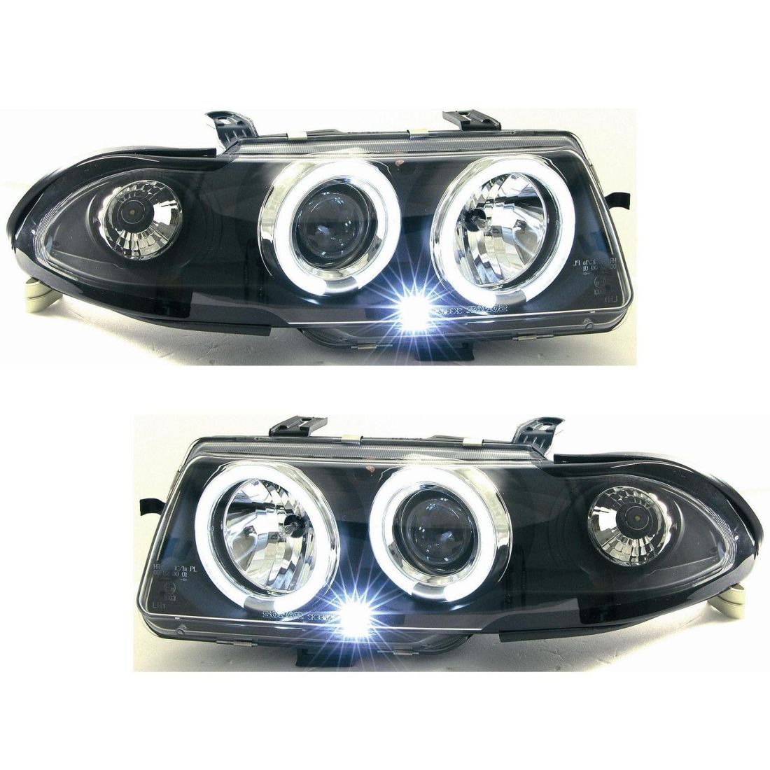 Φανάρια εμπρός angel eyes για Opel Astra F (1994-1999) - μαύρα , με λάμπες (Η1) - σετ 2τμχ.
