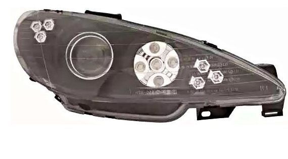 Φανάρια εμπρός angel eyes για Peugeot 206 - μαύρα με led , με λάμπες (Η1) - σετ 2τμχ.