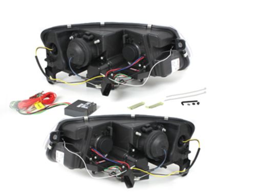 Φανάρια εμπρός για Audi A6 με φώτα ημέρας led (2004-2007) – μαύρα , με λάμπες (Η1) – σετ 2τμχ.