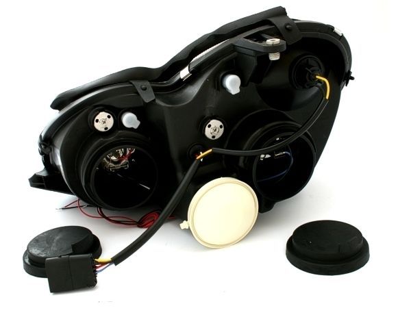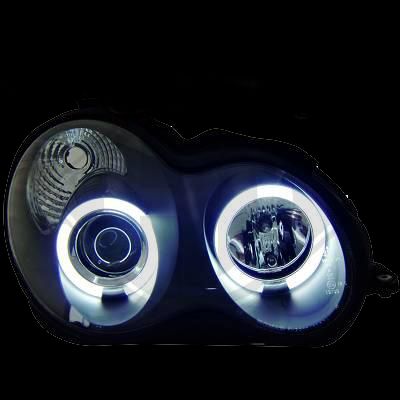 Φανάρια εμπρός για Mercedes C-CLASS W203 sedan (2000-2004) - με angel eyes , μαύρα , με λάμπες (Η1) - σετ 2τμχ.