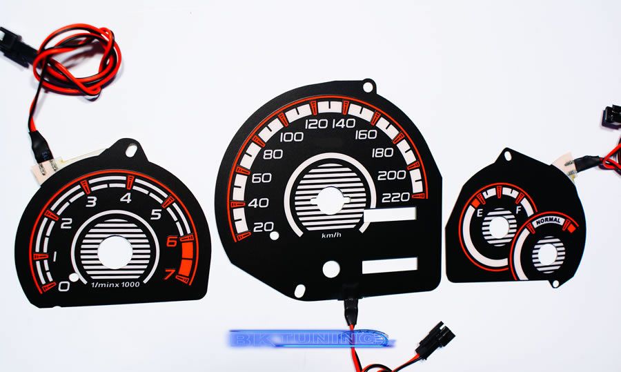 Η συσκευασία περιλαμβάνει: φωτιζόμενα όργανα, ρυθμιζόμενο μετατροπέα έντασης φωτεινότητας και καλώδια.