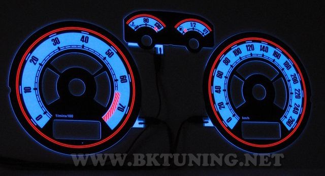 Η συσκευασία περιλαμβάνει: φωτιζόμενα όργανα, ρυθμιζόμενο μετατροπέα έντασης φωτεινότητας και καλώδια.