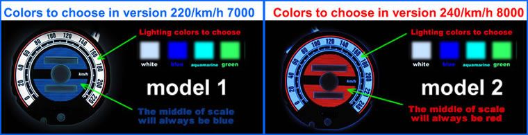 Η συσκευασία περιλαμβάνει: φωτιζόμενα όργανα, ρυθμιζόμενο μετατροπέα έντασης φωτεινότητας και καλώδια.