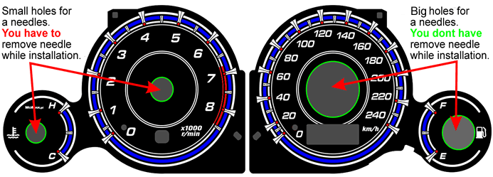 Η συσκευασία περιλαμβάνει: φωτιζόμενα όργανα, ρυθμιζόμενο μετατροπέα έντασης φωτεινότητας και καλώδια.