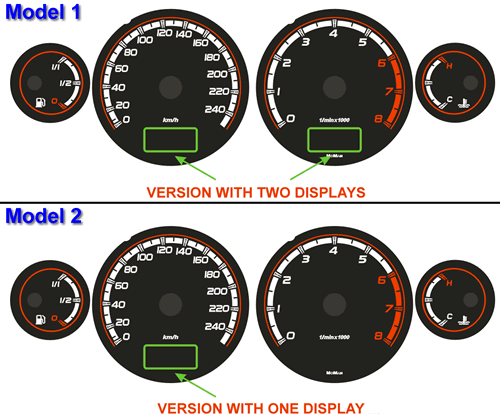 Η συσκευασία περιλαμβάνει: φωτιζόμενα όργανα, ρυθμιζόμενο μετατροπέα έντασης φωτεινότητας και καλώδια.