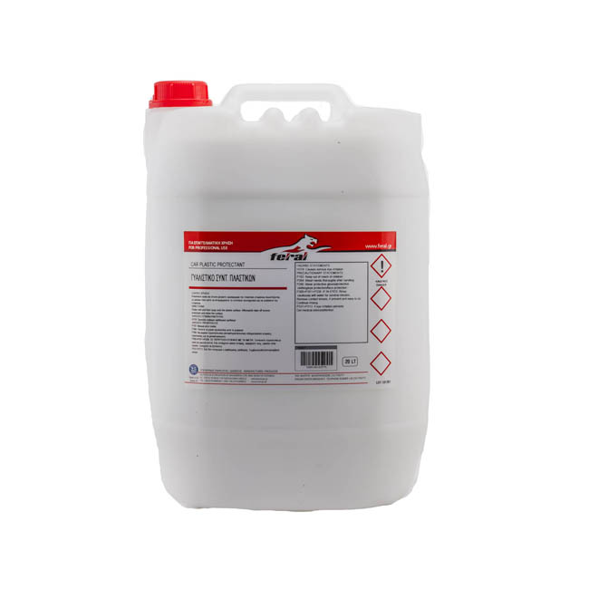 Το γαλάκτωμα – συντηρητικό πλαστικών Feral, χάρη στην ειδική του σύνθεση (υδατική βάση χωρίς διαλύτες), δημιουργεί ένα στρώμα προστασίας από τις υπεριώδεις ακτίνες UV και σταματά την εισχώρηση υγρασίας και οξυγόνου. Έτσι, οι επιφάνειες δεν ξεθωριάζουν, η γήρανση του υλικού επιβραδύνεται ενώ η σκόνη απωθείται. Προστασία και ανανέωση των πλαστικών επιφανειών του αυτοκινήτου σας με ένα ψέκασμα. Χωρίς λιπαρά κατάλοιπα και με ευχάριστο άρωμα. Χρησιμοποιήστε το στο ταμπλό, στις πόρτες, στους προφυλακτήρες, στα ελαστικά και σε οποιαδήποτε άλλη πλαστική επιφάνεια.