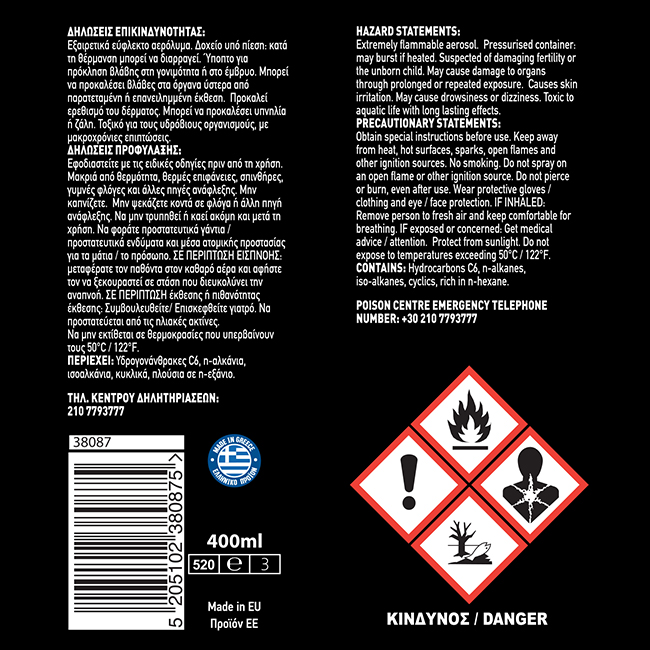Δοχείο υπό πίεση. Προφυλάξτε το δοχείο από τον ήλιο και από θερμοκρασία πάνω από 50ºC