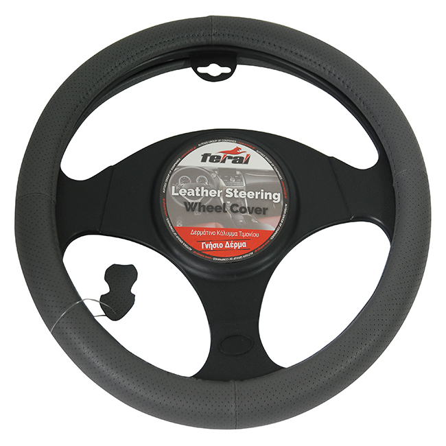 Κάλυμμα Τιμονιού Αυτοκινήτου Δερμάτινο Τρυπητό Γκρι Medium 38cm 1 Τεμάχιο