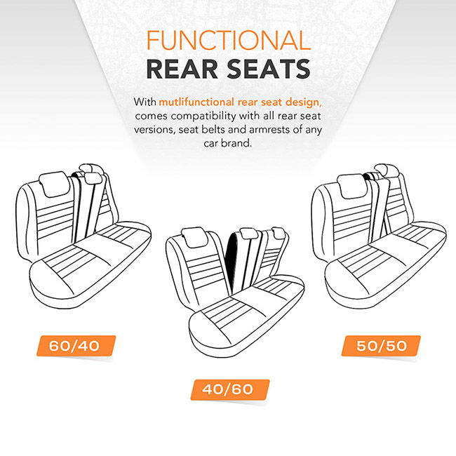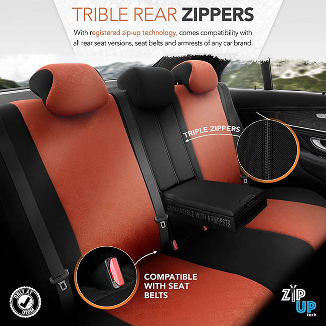 Zip-up Tech: Διαθέτουν 3 φερμουάρ ώστε να προσαρμόζονται στα πίσω καθίσματα είτε είναι διαιρούμενα 60-40, είτε 40-60 είτε 50-50.