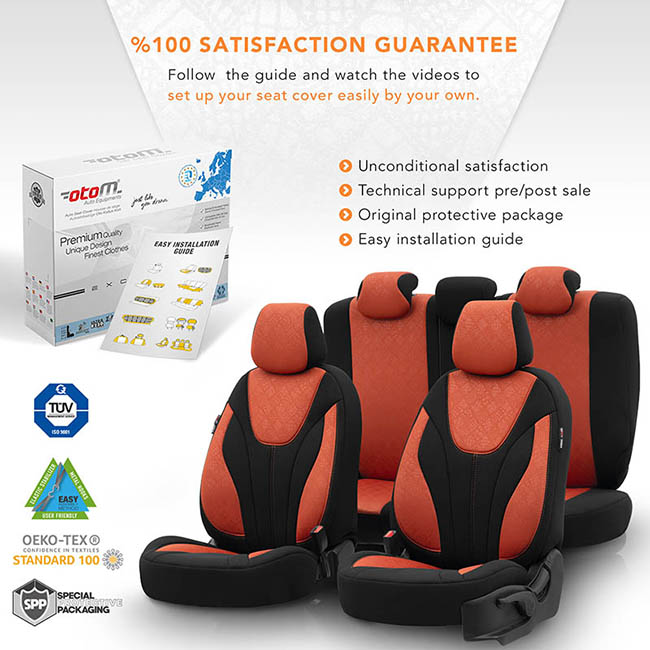 Καλύμματα Αυτοκινήτου Otom Ruby Design Universal Βαμβακερό Ύφασμα Rachel Σετ Εμπρός / Πίσω "Terracota" Μαύρο - Κεραμιδί RBY-1204 11 Τεμαχίων