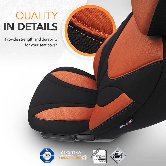 Special Airbag Stitch: Κατάλληλα για καθίσματα εξοπλισμένα με πλευρικούς αερόσακους, καθώς ακολουθούν τα Ευρωπαϊκά στάνταρ, για πιο ασφαλή οδήγηση.