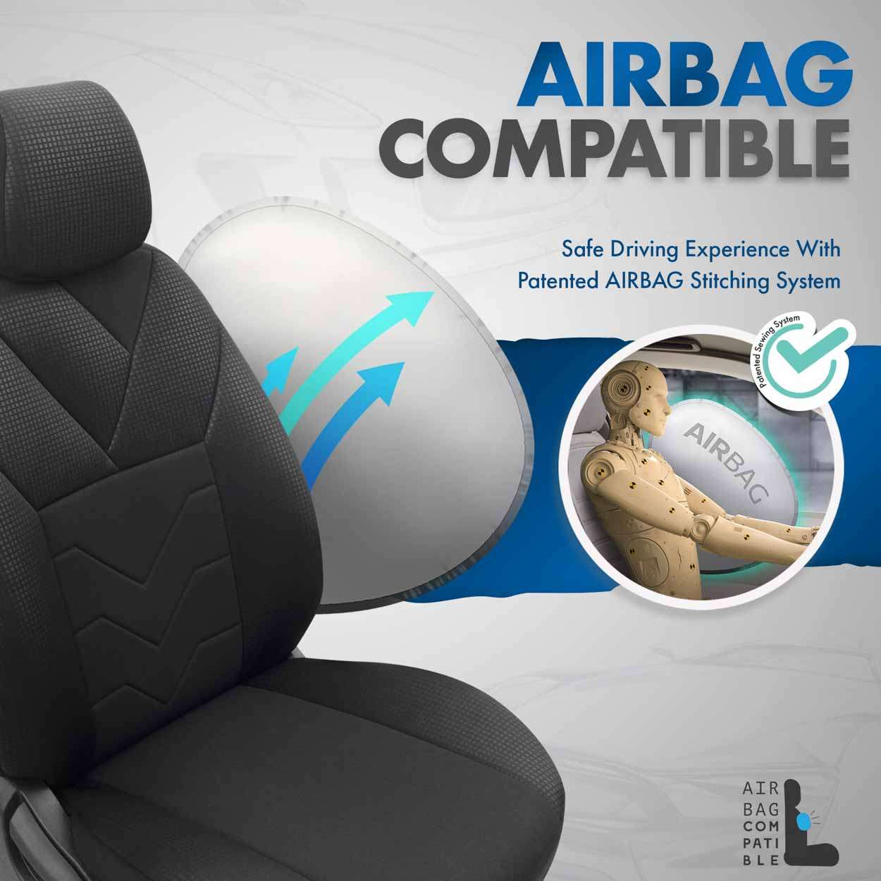 Τα καλύμματα διαθέτουν πιστοποιημένη ραφή AIRBAG, καθιστώντας τα κατάλληλα για αυτοκίνητα με πλευρικούς αερόσακους στα καθίσματα καθώς και για τυπικά καθίσματα. Χάρη στη χρήση ειδικής ραφής, καλύπτουν πλήρως τα καθίσματα χωρίς να διαταράσσουν τη λειτουργία των αερόσακων.