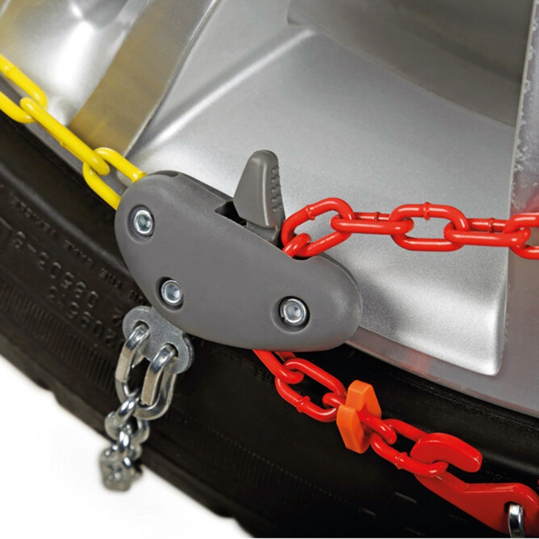 Αλυσίδες χιονιού για τους τροχούς του αυτοκινήτου από την LAMPA, ιταλικής προέλευσης, κατασκευασμένες από σκληρυμένο χάλυβα με συμμετρικό μοτίβο σε σχήμα "διαμάντι" (diamond pattern), κατάλληλες για αυτοκίνητα με περιορισμένο διάκενο μεταξύ των ελαστικών και των μηχανικών μερών τους, βελτιστοποιούν την πρόσφυση του τροχού στο οδόστρωμα και είναι ιδανικές για χρήση κατά την οδήγηση σε παγωμένους ή χιονισμένους δρόμους. Είναι εξοπλισμένες με καστάνια για να μπορεί ο οδηγός να σφίγγει τις αλυσίδες και η οποία στη συνέχεια (μετά τη πρώτη χειροκίνητη ρύθμιση) βοηθάει στο να σφίγγει η κάθε αλυσίδα αυτόματα κατά τη διάρκεια οδήγησης χωρίς να χρειάζονται επιπλέον στάσεις για χειροκίνητη ρύθμιση. Διαθέτουν ενσωματωμένο εσωτερικό εύκαμπτο καλώδιο για εύκολη τοποθέτηση και συγκράτηση στο ελαστικό, χωρίς να χρειάζεται να μετακινήσετε ή να ανασηκώσετε το όχημα σας, καθώς και επικάλυψη πλαστικού σε όλα τα μέρη που έρχονται σε επαφή με τη ζάντα για να μην προκαλούν φθορές ή γδαρσίματα. Αντιολισθητικές, ιδανικές για πλήρη προστασία κατά τη διάρκεια οδήγησης το χειμώνα, πρακτικές, ιδανικές για όλους τους τροχούς και για αυτοκίνητα που είναι εξοπλισμένα με ζάντες αλουμινίου χωρίς να προκαλούν φθορές. Η συσκευασία περιλαμβάνει γάντια εφαρμογής και πλαστική θήκη με χερούλι για αποθήκευση και μεταφορά στο πορτ μπαγκάζ του οχήματος. Εύκολη και γρήγορη τοποθέτηση. Κατάλληλο μέγεθος: Για την επιλογή του κατάλληλου μεγέθους αλυσίδας για τα ελαστικά σας, θα πρέπει να λάβετε υπόψιν σας τις διαστάσεις που είναι χαραγμένες επάνω στα πλευρικά τοιχώματα των λάστιχων του οχήματός σας (πλάτος, προφίλ και διάμετρο). Εφαρμογή: Οι αλυσίδες χιονιού πρέπει να τοποθετούνται συνδυαστικά ΠΑΝΤΑ στους 2 κινητήριους τροχούς, ενώ σε περιπτώσεις τετρακίνησης (4W) συνίσταται η χρήση αλυσίδας σε όλες τις ρόδες του οχήματος.