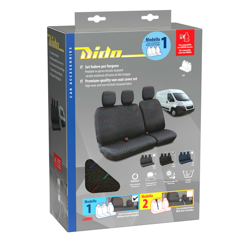 Καλύμματα Καθισμάτων Dido-1, χωρίς επανατυλικτήρα ζώνης - Μαύρο