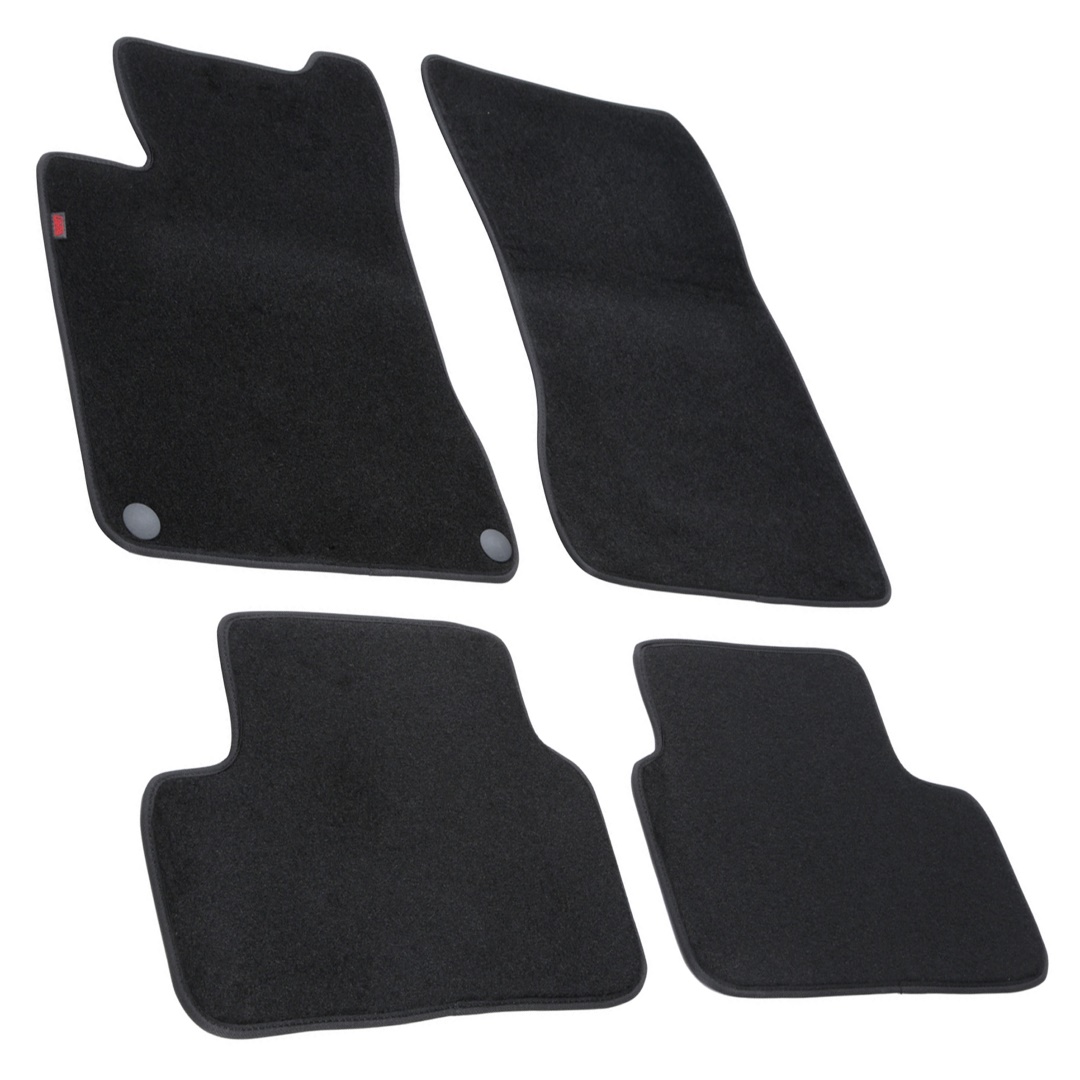 Πατάκια αυτοκινήτου από την εταιρία LAMPA, ιταλικής προέλευσης, κατασκευασμένα από υψηλής ποιότητας μοκέτα – 100% πολυπροπυλένιο – σε μαύρο χρώμα με περιμετρικό φινίρισμα από βελούρ ρέλι (απομίμηση βελούδου), σχεδιασμένα για να ταιριάζουν ακριβώς στις διαστάσεις του δαπέδου του εκάστοτε οχήματος – μαρκέ προϊόν. Είναι αδιάβροχα και διαθέτουν αντιολισθητικό πάτο ενισχυμένο με gel στο πίσω μέρος τους για καλύτερη πρόσφυση στο δάπεδο, καθώς και κουμπιά στερέωσης fix-points για όσα οχήματα είναι εξοπλισμένα με αντίστοιχες εργοστασιακές υποδοχές για να παραμένουν σταθερά στο πάτωμα της καμπίνας κατά την είσοδο/έξοδο των επιβατών.