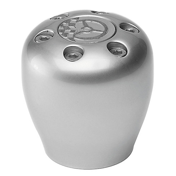 Πόμολο ταχυτήτων κατασκευασμένο από αλουμίνιο. Το πόμολο διαθέτει βίδες άλεν στο επάνω μέρος ως σχέδιο. Η συσκευασία περιλαμβάνει κιτ τοποθέτησης με αντάπτορες και άλεν κλειδί. Universal εφαρμογή, ταιριάζει για μοχλό που διαθέτει επιλογέα ταχυτήτων με ανύψωση ή μετατόπιση (σηκωτή ή πατητή όπισθεν) και μέγιστη διάμετρο 33 mm.