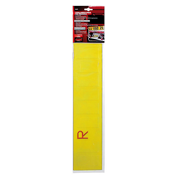 Πινακίδα αλουμινίου φορτηγού σε κίτρινο χρώμα. Με προκαθορισμένες θέσεις για την εύκολη εφαρμογή των γραμμάτων και αριθμών. Διαστάσεις: 480×110 mm.
