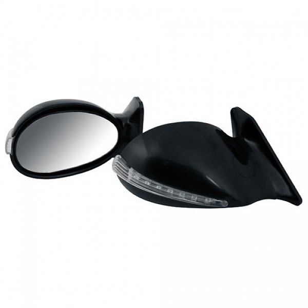 Αεροδυναμική σχεδίαση με άψογο στυλ με φλας LED (χειροκίνητος). Κατασκευασμένοι από ABS πλαστικό. Universal για όλα τα αυτοκίνητα, μπορεί να τοποθετηθεί χωρίς διάτρηση (σετ προσαρμογείς διατίθενται ξεχωριστά). Διαθέσιμοι ανταλλακτικοί καθρέφτες. Συσκευασία 2 τεμαχίων.