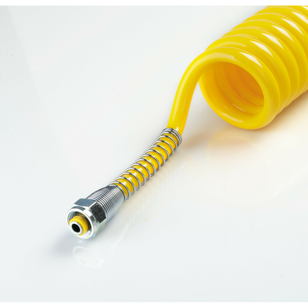 Σωλήνας σπιράλ αέρα κίτρινος απο την εταιρεία LAMPA, ιταλικής προέλευσης.Θηλυκοί ακροδέκτες M18 ενισχυμένοι με μεταλλικό ελατήριο.Type DIN 74323-74324