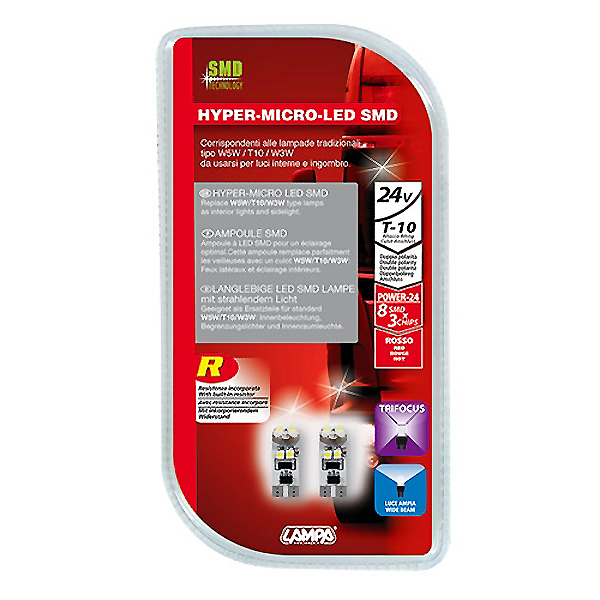 T10 W5W 24V 55lm HYPER-LED24 ΚΟΚΚΙΝΟ ΔΙΑΘΛΑΣΗΣ 8SMDx3chips (ΤΡΙΠΛΟΕΣΤΙΑΚΟ- CAN-BUS) 2ΤΕΜ