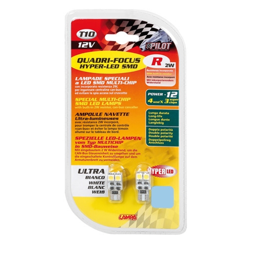 Λαμπάκι T10 12V HYPER-LED CANBUS 4 SMD λευκό διπολικό ενσωματωμένη αντίσταση 2 τεμ.