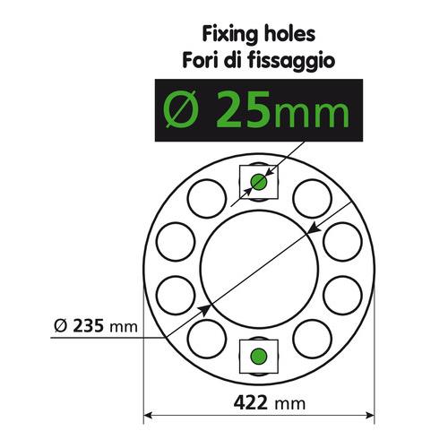 Κατασκευασμένο από ανοξείδωτο ατσάλι. Διάμετρος δακτυλίου 422 mm. 10 οπές για μπουλόνια Ø 25 mm