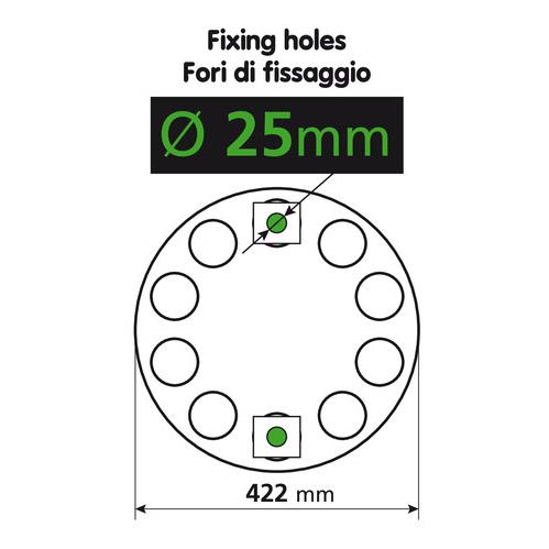 Κατασκευασμένο από ανοξείδωτο ατσάλι. Διάμετρος δακτυλίου 422 mm. 10 οπές για μπουλόνια Ø 25 mm