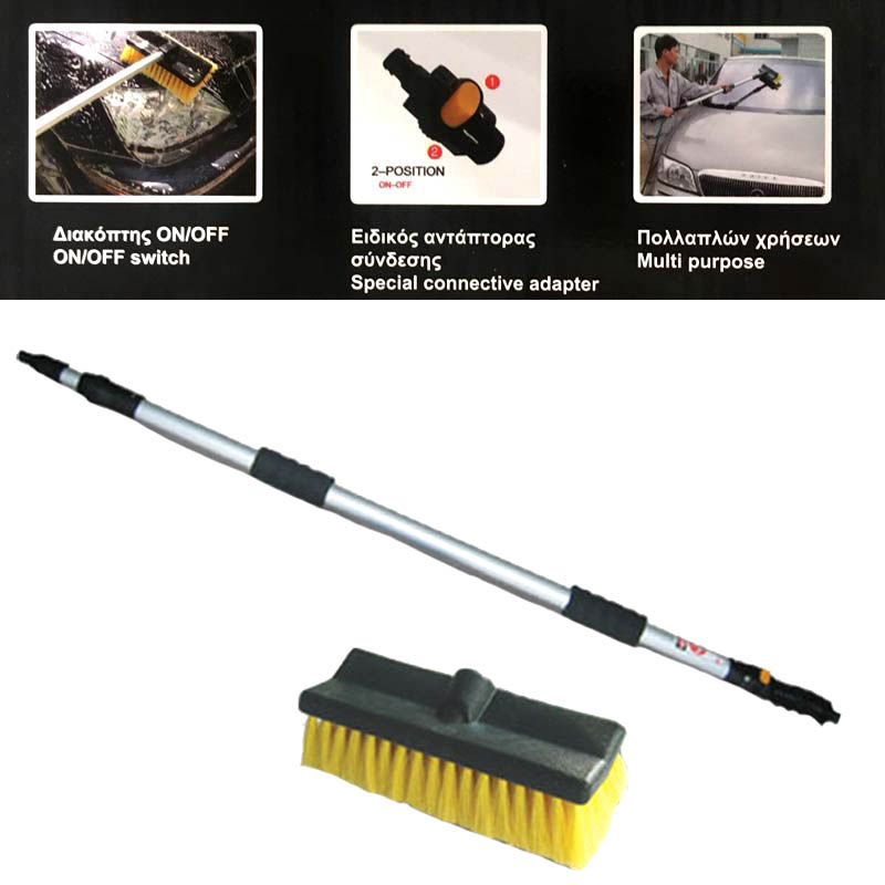 Επαγγελματική βούρτσα πλυσίματος αυτοκινήτων, φορτηγών, σκαφών κτλ., από όπου περνάει νερό από μέσα για να κάνει το πλύσιμο πιο εύκολο και γρήγορο με ειδική πολύ μαλακή τρίχα που δε γραντζουνάει το αυτοκίνητο.