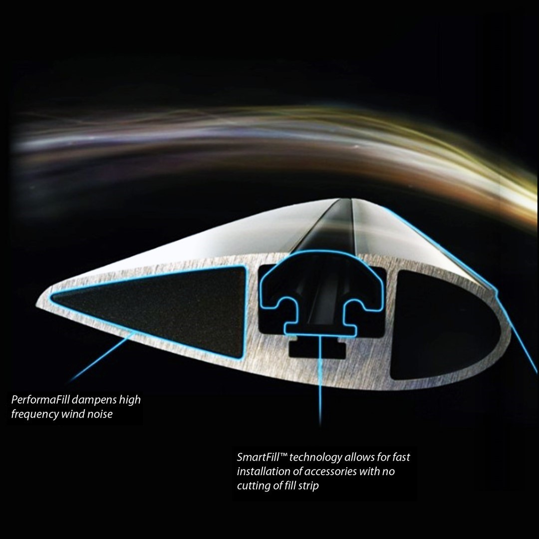 Κατασκευασμένες από υψηλής ποιότητας υλικά, όπως ανοδιωμένο αλουμίνιο (λεπτό στρώμα οξείδωσης αλουμινίου, ενσωματωμένο πλήρως στην εξωτερική επιφάνεια της μπάρας, αναδεικνύοντας τη μεταλλική φύση του αλουμινίου και προσφέροντας σταθερότητα απόχρωσης, ανθεκτικότητα και ευκολία συντήρησης), εξοπλισμένες με ενσωματωμένες κλειδαριές (ILS) και υποδοχή SmartFill (σιρίτι στο πάνω μέρος), προστατευμένη με ελαστικό αντιολισθητικό κάλυμμα κατά μήκος της, το οποίο μπορεί να δεχθεί συρταρωτά όλα τα δυνατά επιπρόσθετα συμπληρωματικά εξαρτήματα, πχ. μπαγκαζιέρες, βάσεις μεταφοράς ποδηλάτων, σκι, snowboard, κανό, κ.ά.